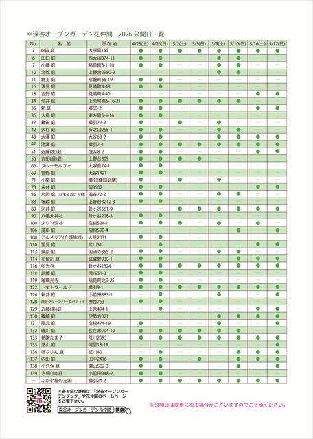 第23回ふかやオープンガーデン公開一覧表